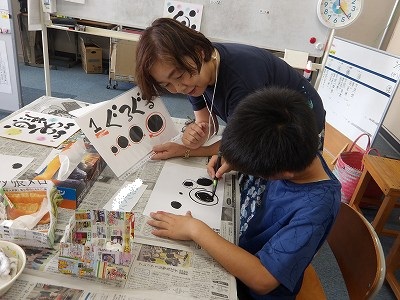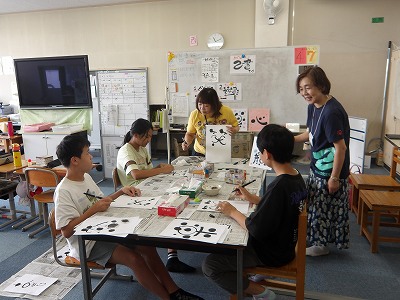 かがやき学級に、「己書」(おのれしょ)の先生に来ていただき、体験学習をしました。