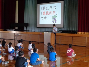 6月15日は、県民の日です。本校では「県民の日集会」を行い、校長先生からお話をいただきました。栃木県の自然や文化、歴史等について学習し、改めてふるさとを大切にしていこうという気持ちを持ちました。