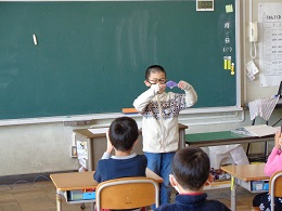 身振り、手振りを加えながら、上手に立派に発表できるようになりました。