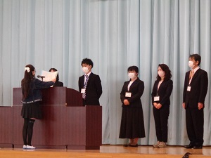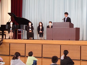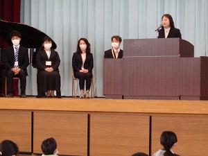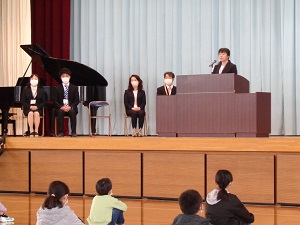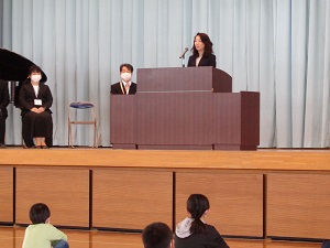 児童代表の6年生が、新しく来られた先生方に歓迎の言葉を述べました。