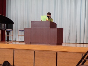 6年生の代表児童が、6年生になって頑張りたいことを発表しました。