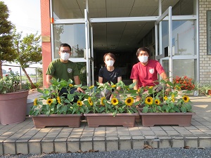 上三川町4Hクラブの方より、「スマイルプロジェクト~農業の力でまちを明るく元気に~」の一環として、ひまわりのプランターを6個も頂きました!