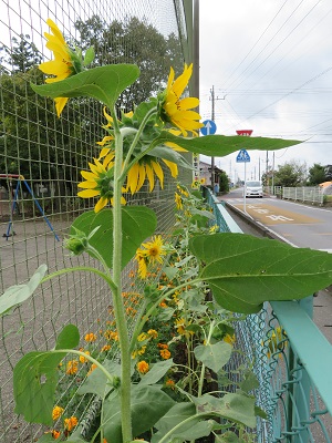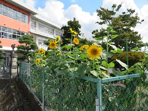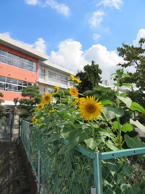 マスコットキャラクターのごうちゃんにちなんで、子供たちが植えたひまわりの花が、きれいに咲きました。ひまわりの花のように、子供たちもぐんぐん成長していってほしいです。