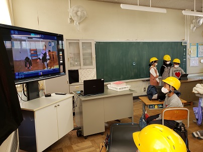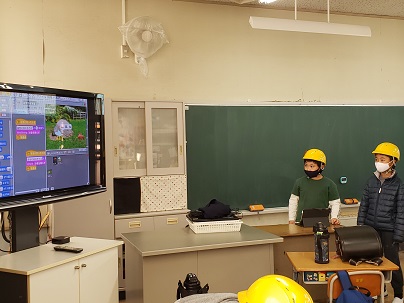 理科グラミング係は、「みんなに理科をゲーム感覚で学んでほしい」ということをねらいに活動しています。写真は、自分たちでプログラミングした「理科物語」を披露しているところです。披露した後には、係の子同士で、「作った甲斐あったね!」と嬉しそうにしていました。