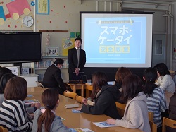 教育講演会では、スマートフォンや携帯電話の安全な使い方についての講演が行われました。