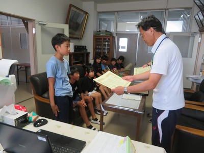 表彰の様子は、給食の時間にズームで流し、みんなで教室から拍手を送りました。