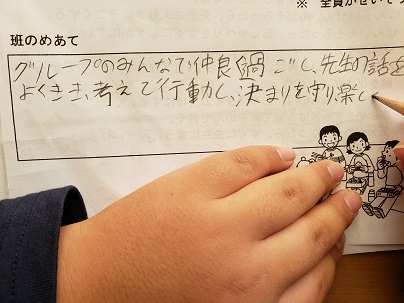遠足に行く前には、活動班で、「班のめあて」を決めました。めあてを考えるときは、ロイロノートのウェビングマップやクラゲチャートという思考ツールを使って考え、ステキなめあてが完成しました。