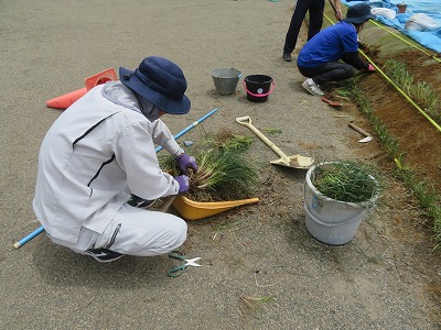 しっかり根付いて、斜面が崩れるのを防いでくれるといいですね。