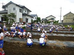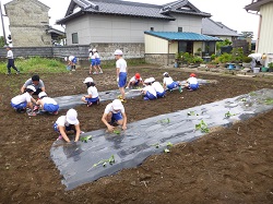 縦割り班ごとに、さつまいもの苗植えを行いました。