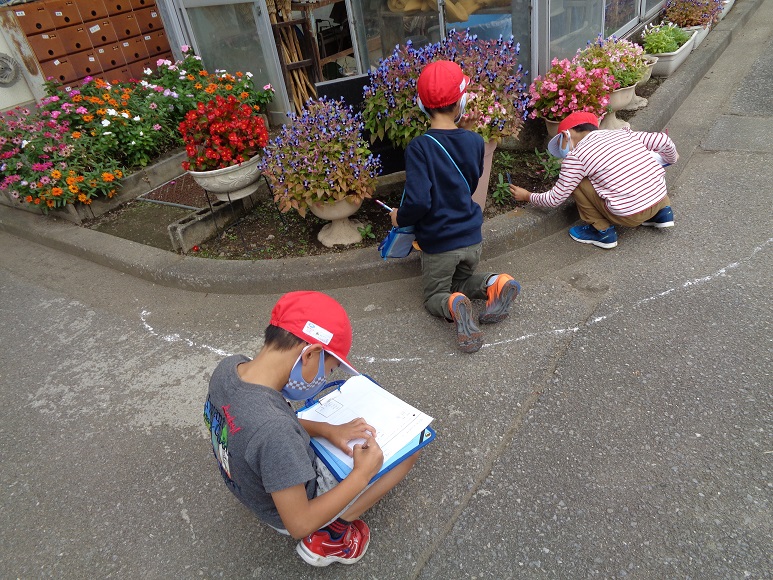 今日の国語の授業、「はっけんしたよ」では校庭で見つけたものの