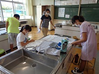 家庭科「楽しくソーイング」で、エプロンの製作が始まりました。