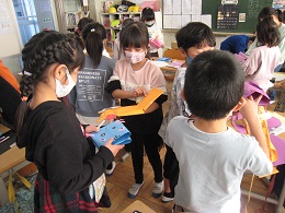 友達の作品と触れあいながら、よいところを積極的に探す姿に、子供たちの成長を感じました。
