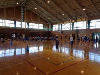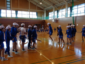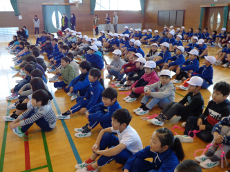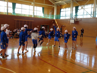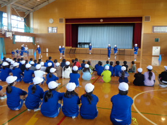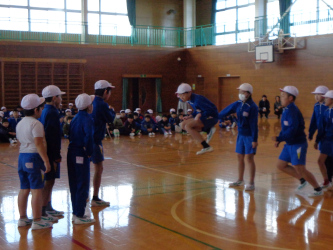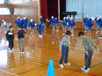 1月21日、昼休みの時間になわ跳びの種目別模範跳びの発表を行いました。