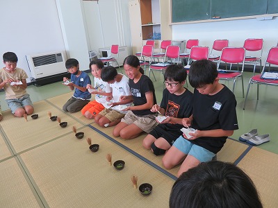茶筅を振って細かい泡を点てるのに苦戦していましたが、自分で点てたお茶はおいしかったようです。