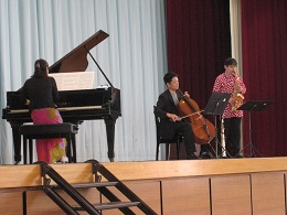 サクソフォーン、チェロ、ピアノの生演奏です。