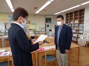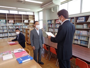 今年度は9名の学校運営協議会委員の皆様にお願いすることとなり、校長から委嘱状が手渡されました。