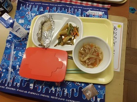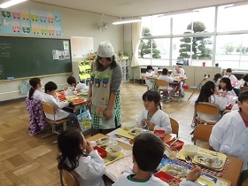1年生の給食は今週火曜日から始まりました。今日で3日目です。