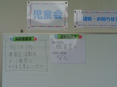 各委員会やクラブの先生からのお知らせなどが書かれます。登校したら朝のうちに、自分に関係がある連絡がないか確かめてください。