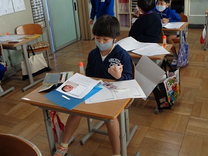 生活科「あしたへジャンプ」の学習では「自分ものがたり」の制作を始めました。