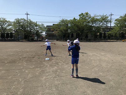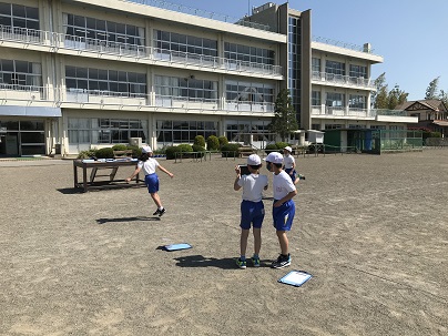 体育の授業で、1チーム4人ずつに分かれてリレーを行いました。初めに測ったチームのタイムを縮めることを目指して、リレーのバトンの渡し方を練習しました。タブレットで、受け渡しの仕方を動画で撮影し、友達同士でよりよくできるようアドバイスをし合いました。見事本番ではどのチームも、タイムを縮めることができました。