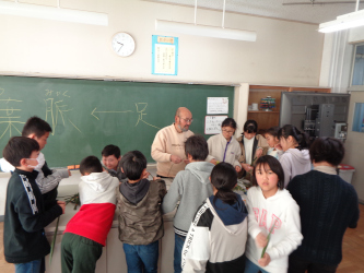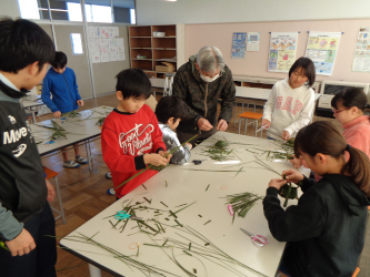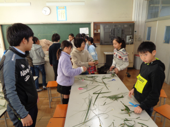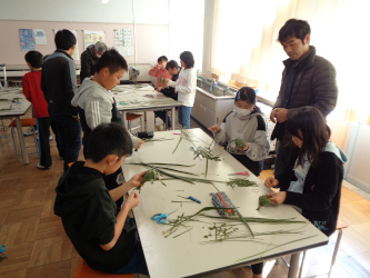 2月5日、5年生が外部講師を依頼し、シュロ細工の体験活動を行いました。