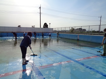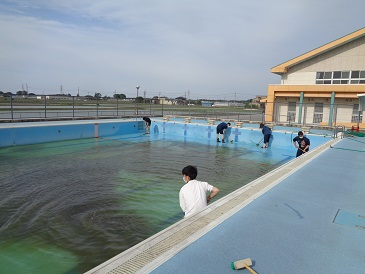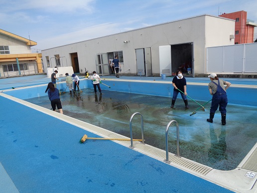 本日、2年ぶりのプール清掃をボランティアの方や、本郷北小学校の先生方、本校職員で行いました。皆様のおかげで、2年間分の汚れを大分落とすことができました。