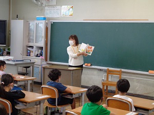 ①「お話玉手箱」(通称おはたま)月に1・2回程度、朝の読書活動の時間(火・木曜 8:15~8:30)に各クラスに行き、読み聞かせをしています。季節や行事に合わせた本や、人気の絵本などを学年も考慮して選ぶようにしています。