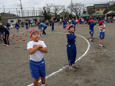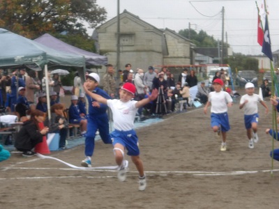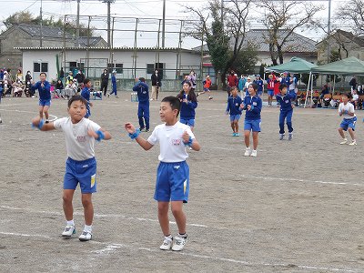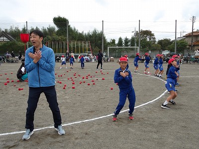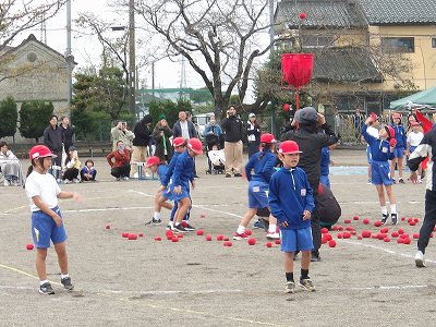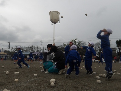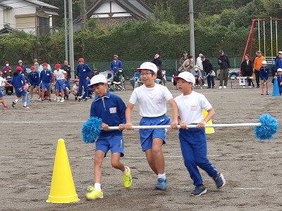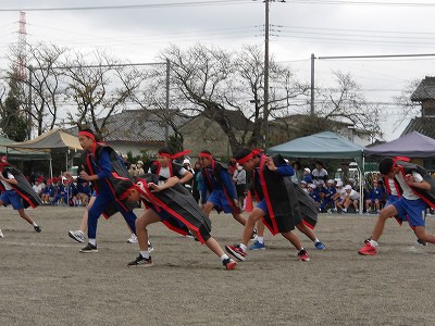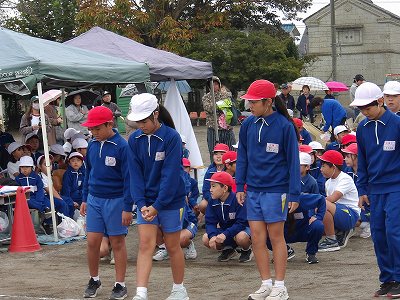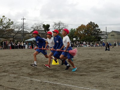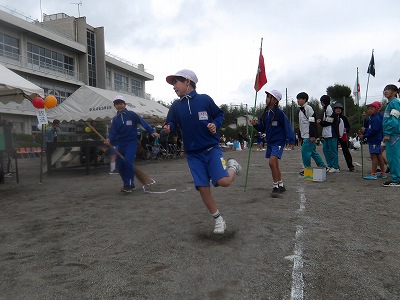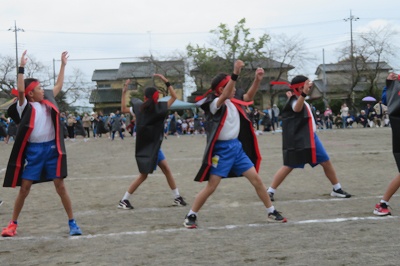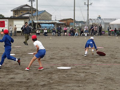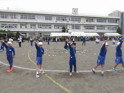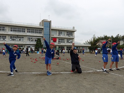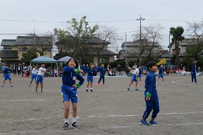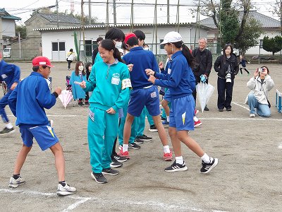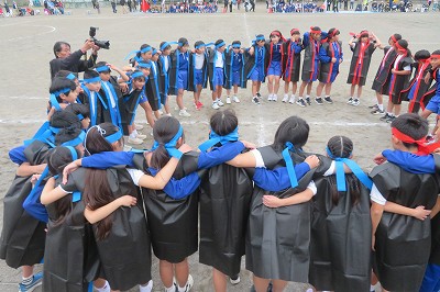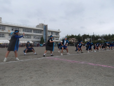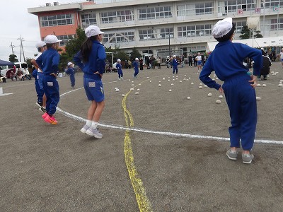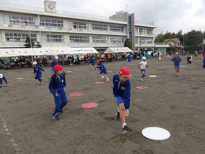1~4年生の団体競技は、台風の目とオセロを組み合わせた競技です。