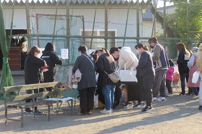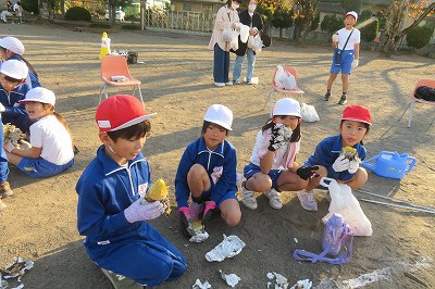 縦割り班に分かれて、焼き芋の準備をしました。