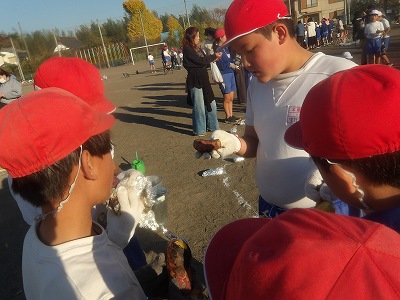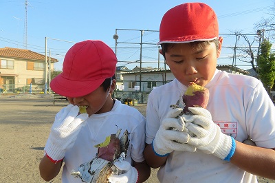 相撲大会の後は、みんなが楽しみにしていた焼き芋です。