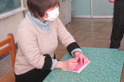 点字表を見ながら、一生懸命自分の名前を打ちました。