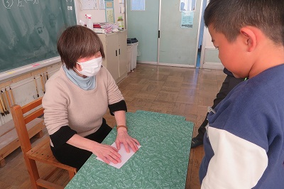 3年生福祉教育、最後の体験学習は、目の不自由な方の生活体験です。