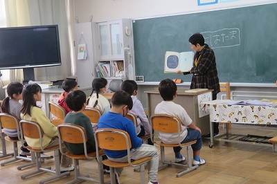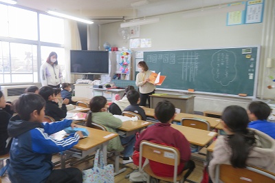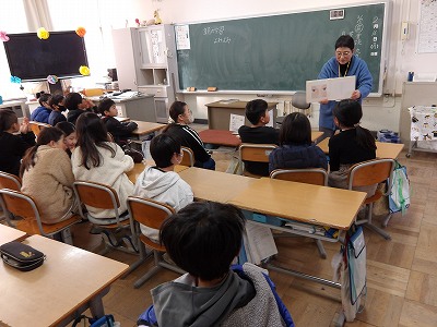 しらさぎ語り部の方が来校し、「ねずみ観音」のお話を語ってくれました。