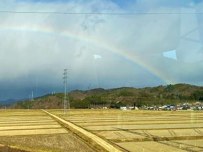 バスが福島に近づくにつれて雨が降りはじめました。しかし、野口英世記念館に到着するころには雨は上がり、車窓からきれいな虹が見えました。福島の自然が、6年生を歓迎してくれているようでしたね。