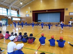 低学年は、あや跳び、交差跳びなどを、高学年になると、ハヤブサ跳び、カミナリ跳び、イナズマ跳びなどを披露してくれました。