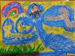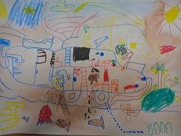 図工の時間に「できたらいいな、こんなこと」を考えて、絵を描きました。