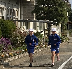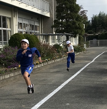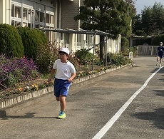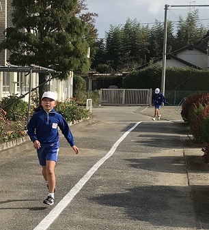 1年ぶりの持久走大会の練習のため、少し苦しそうな様子も見られますが、自分で走るペースを考えながら、あきらめず走っています。