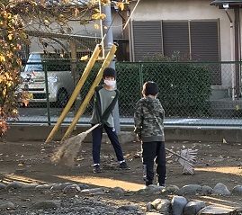 先日の学級会で、「学校のためにできることは何か」ということについて話合いをしました。その中で、5・6年生が行っている朝の落ち葉掃きを手伝いたいという意見がでました。そこで、今日明日と6年生は修学旅行のため、4年生が落ち葉掃きを行うことにしました。