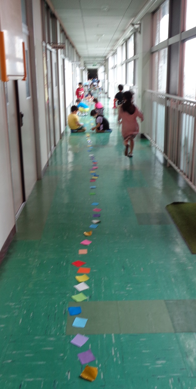 最後に全員で廊下に全ての折り紙を並べました。