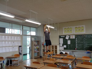 教室や総合学習室の扇風機を外して、きれいに洗っていただきました。
