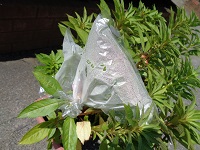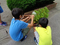理科の実験では、「根から取り入れた水は、その後どうなるのか?」という問題を確かめるために、実験を行いました。ホウセンカにビニールぶくろをかぶせた結果、ふくろの内側がくもり、水滴を集めることができましたね。根から取り入れた水が、葉から水蒸気となって出て行っていることが証明できました。