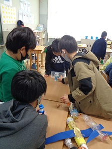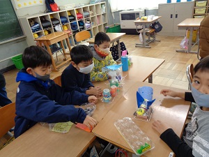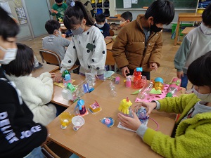 今日の図工では自分たちで作った「ピコリン星人」たち同士で仲良く遊びました。
