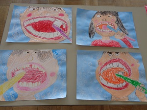 先週・今週の図工の授業では、歯みがきをしている絵を描きました。