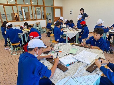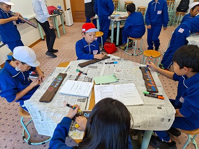 1日目に拾った貝殻を、学校に戻ってから飾り付けました。