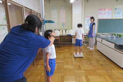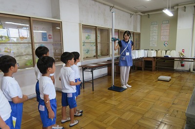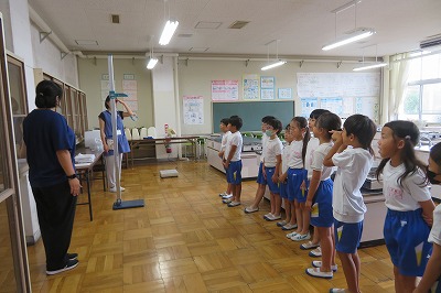 保健の先生に挨拶をして、身体測定の仕方を聞きました。
