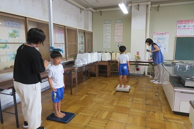 夏休み明け、どれくらい大きくなったか、身体測定を行いました。