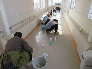 環境ボランティアの皆様が、体育館通路をきれいにしてくださいました。丁寧に磨いてくださったので、通路の床がピカピカになりました。いつも、本当にありがとうございます。