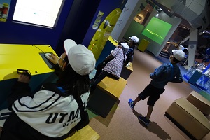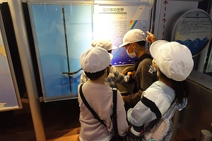 館内の展示場で班別行動