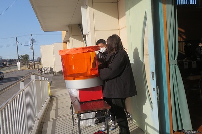 実際に目の不自由な方にお越しいただき、日常生活の様子や便利な道具などについてお話を伺った後、点字を打つ体験をしました。