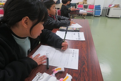 代表委員は、クラスに帰ったら伝えられるように、プリントに書きます。